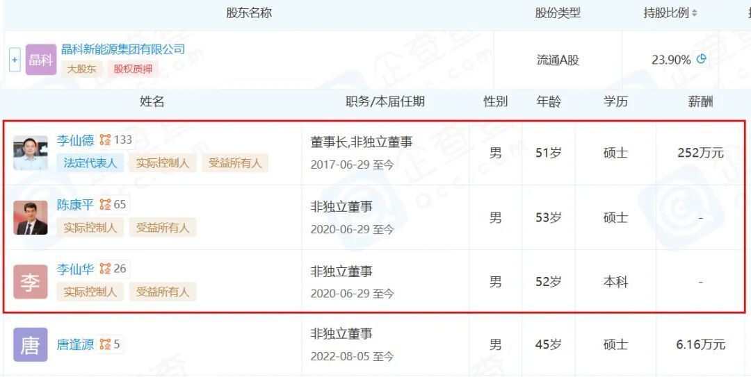 晶科科技,主业作念新动力电站投资运营,董事长李仙德,与妻兄陈康平、二哥李仙华,三东说念主为实控东说念主,通过晶科动力持股23.9%。